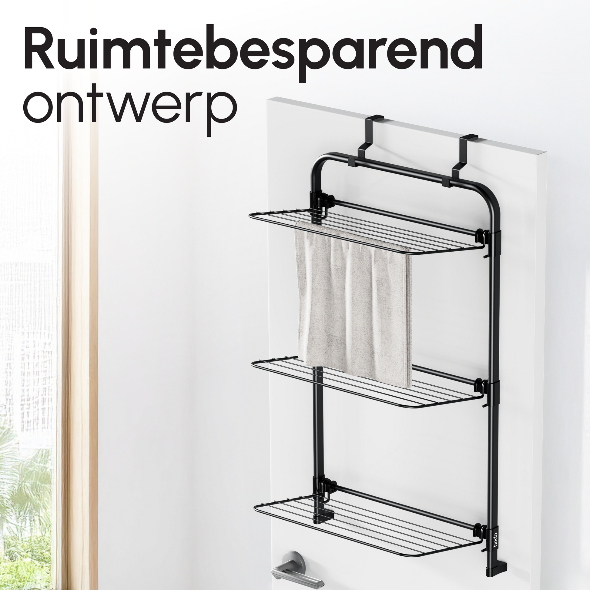 Bodo® Droogrek voor Deur of Douchewand – 10 meter – Hangend Wasrek Inklapbaar - Zwart