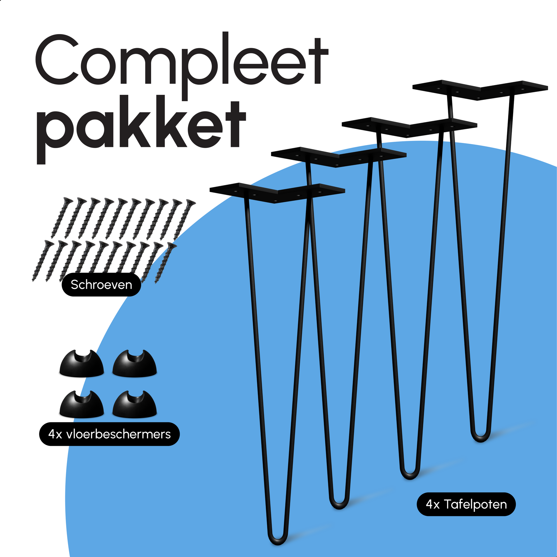Bodo® Industriële Hairpin tafelpoten set 4 stuks – 45 cm – Zwart