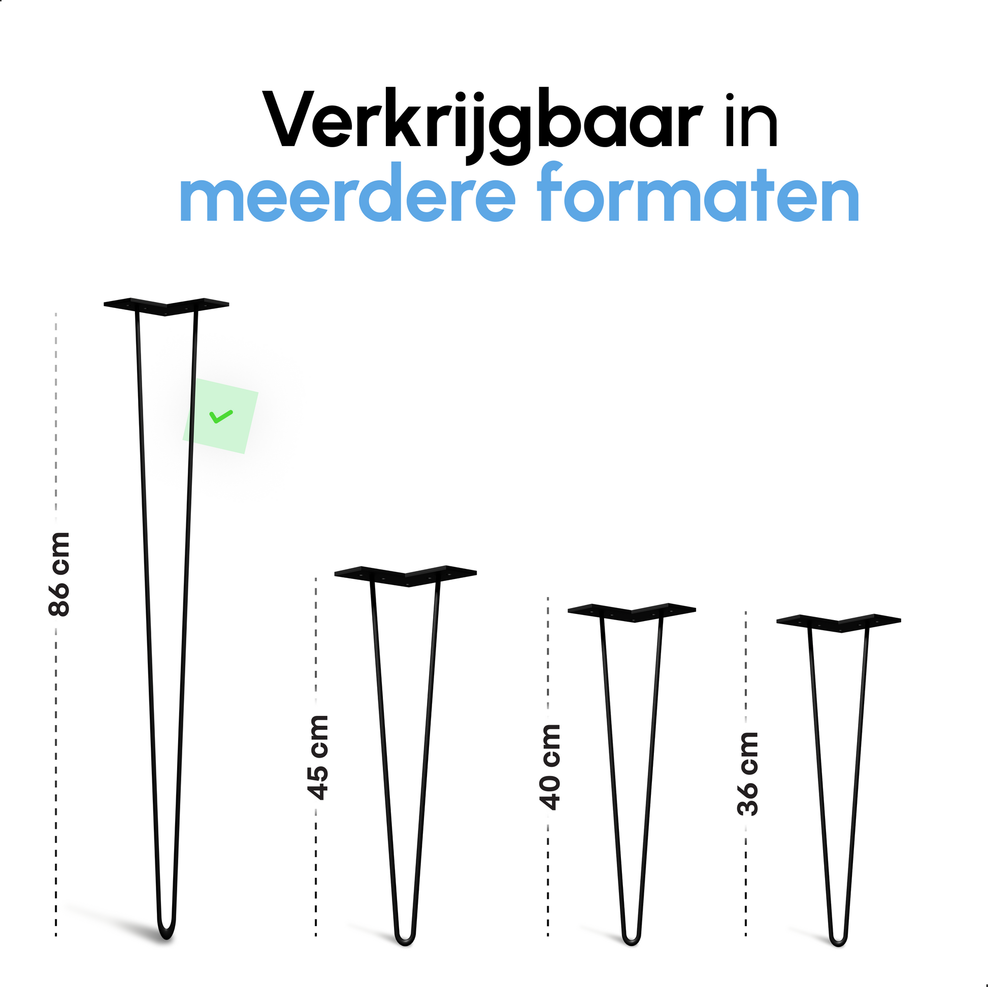 Creëer eenvoudig je eigen industriële tafel met deze Hairpin tafelpoten (set 4 stuks) van 86 cm. Duurzaam, stijlvol en eenvoudig te monteren.