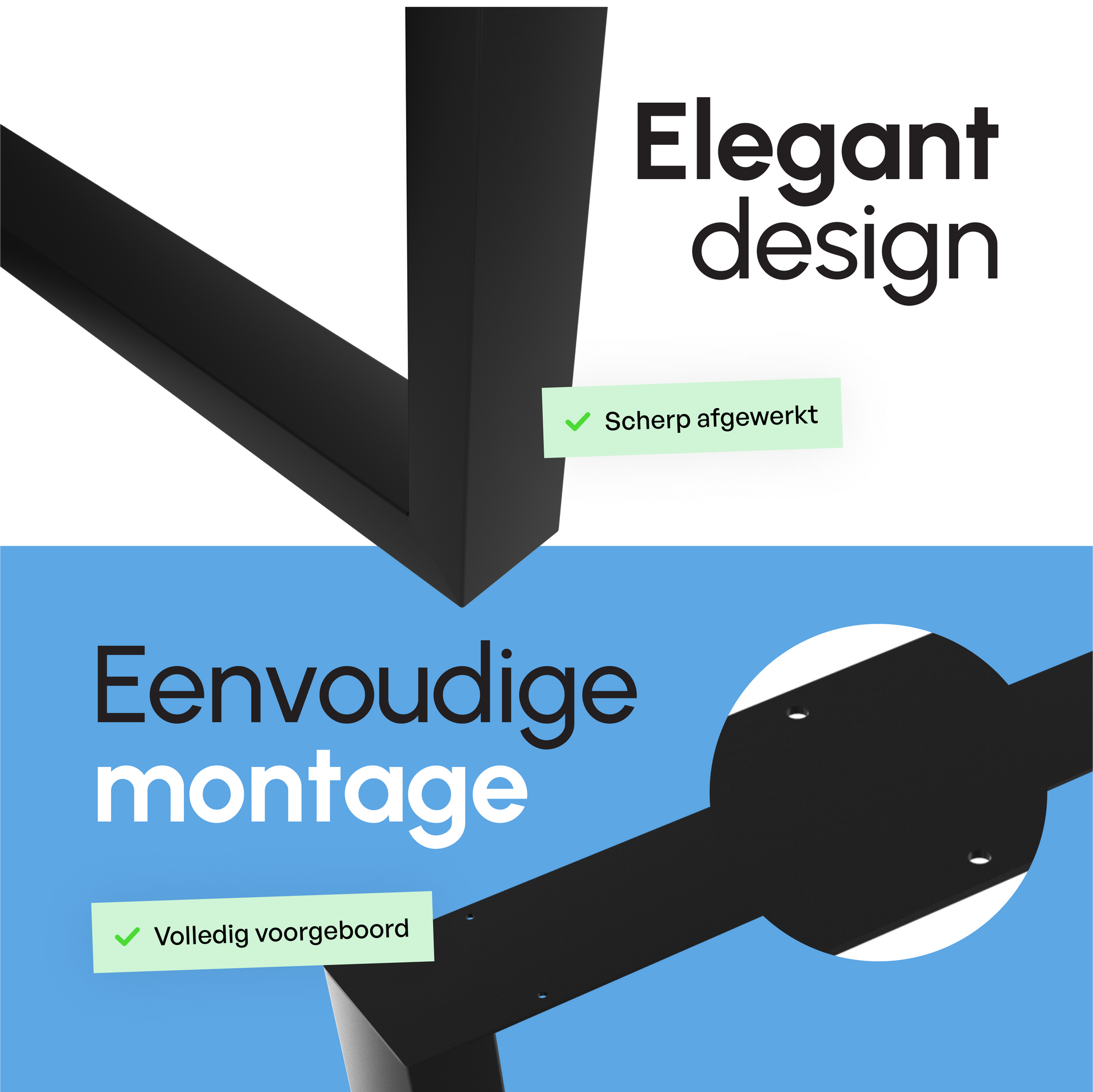- Gemakkelijk te reinigen: Het gladde oppervlak van het gepoedercoate staal maakt de tafelpoten eenvoudig te reinigen, waardoor ze hun moderne uitstraling behouden zonder veel inspanning.