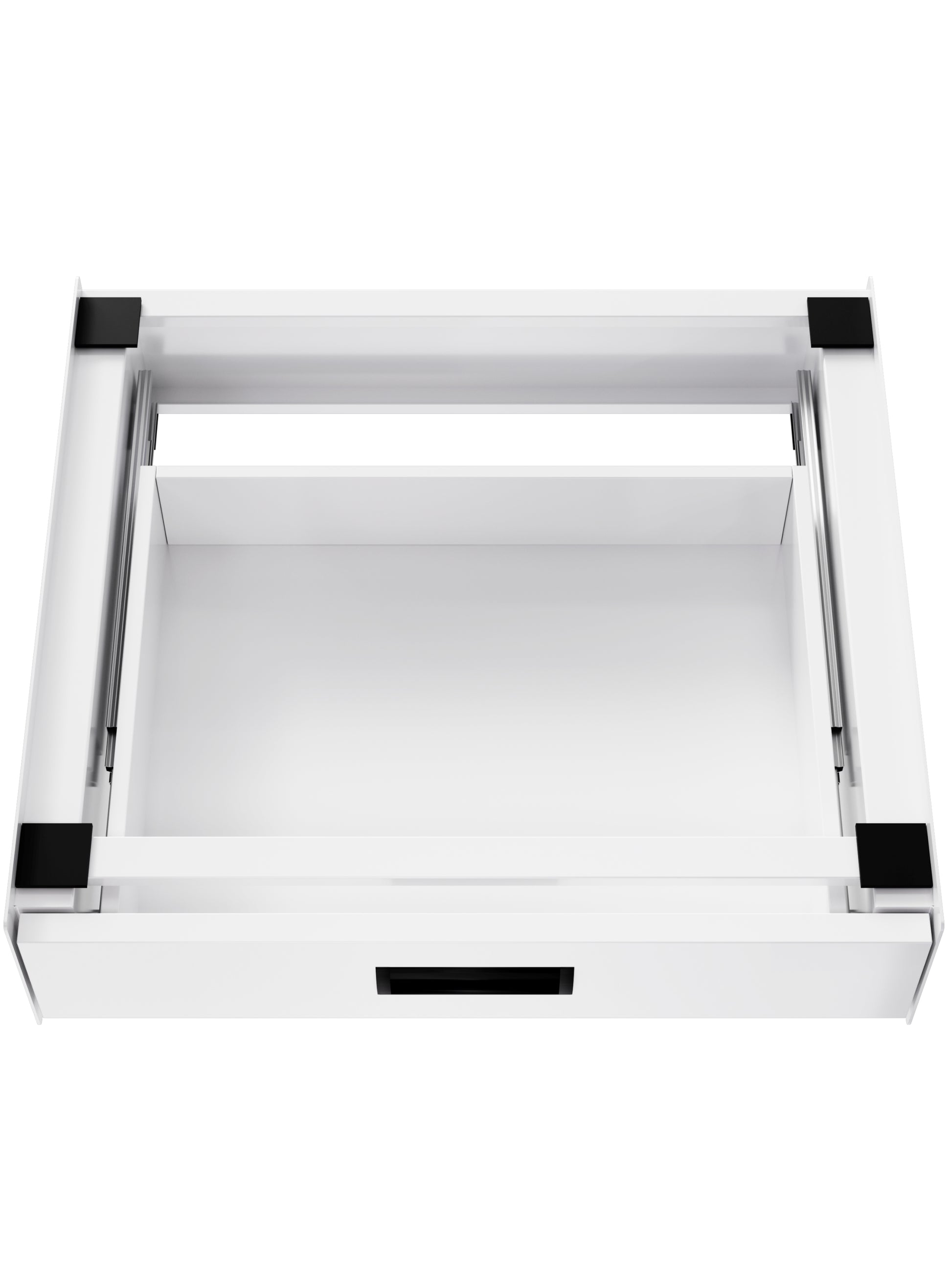 Bespaar ruimte en verhoog je comfort met dit stevige tussenstuk voor wasmachine en droger – inclusief uitschuifbare opberglade en trillingsdempers.