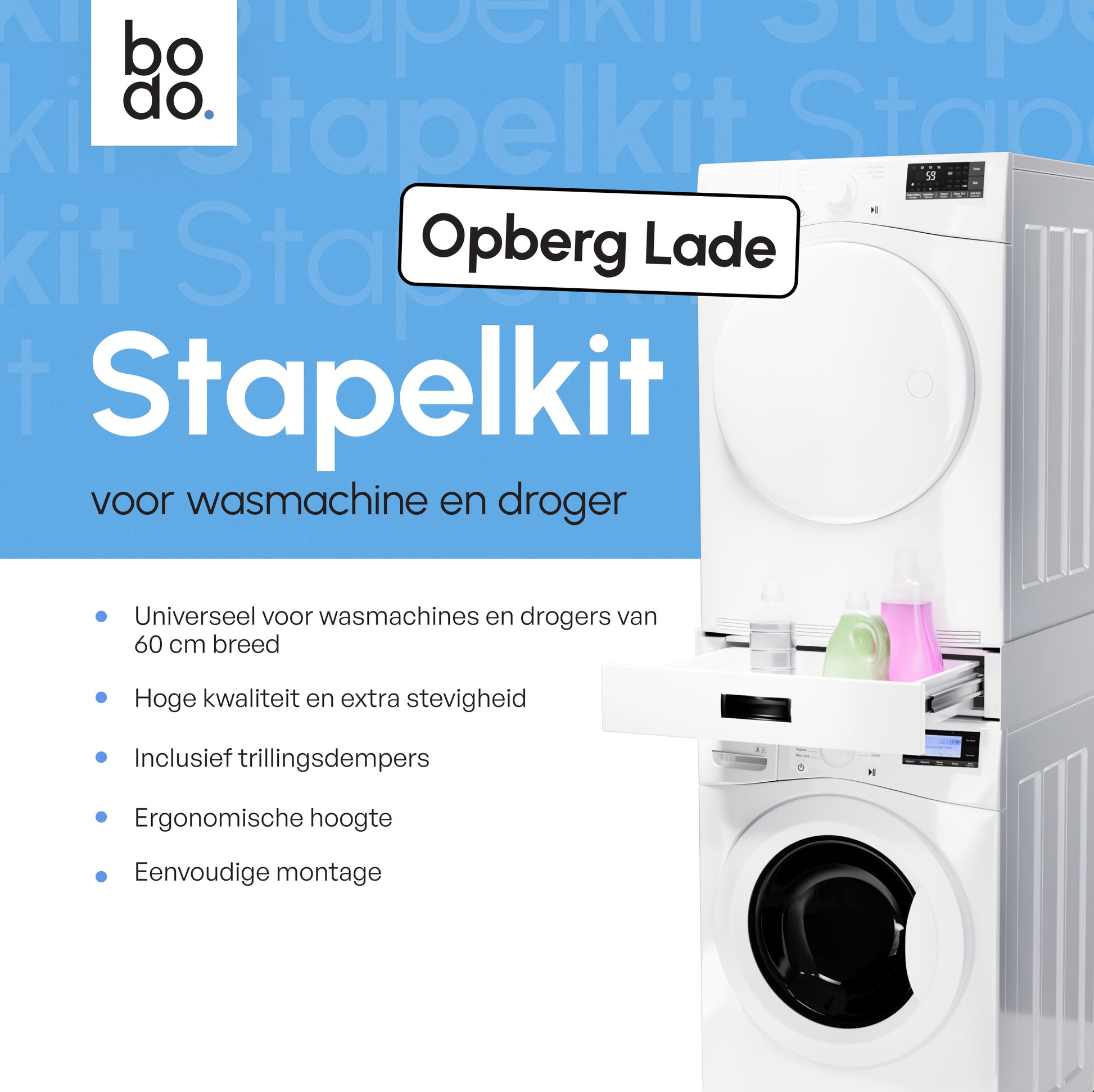 Bodo® Stapelkit - Tussenstuk met Opberglade - Wasmachine en Droger - Wit