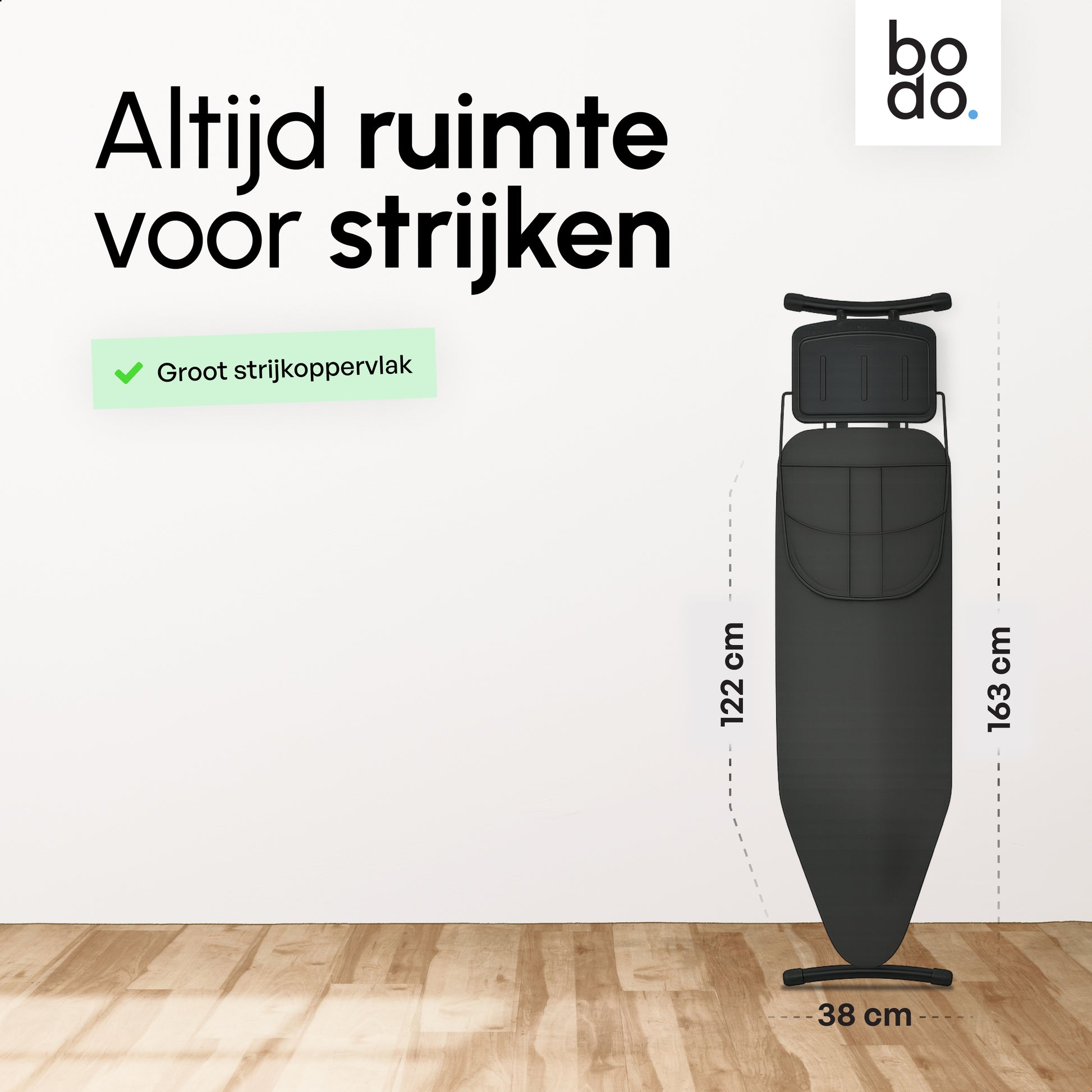 Bodo Strijkplank Ascend Prime – Verstelbaar, stabiel en extra breed – Inclusief stoomstrijkijzerhouder en ophangrek