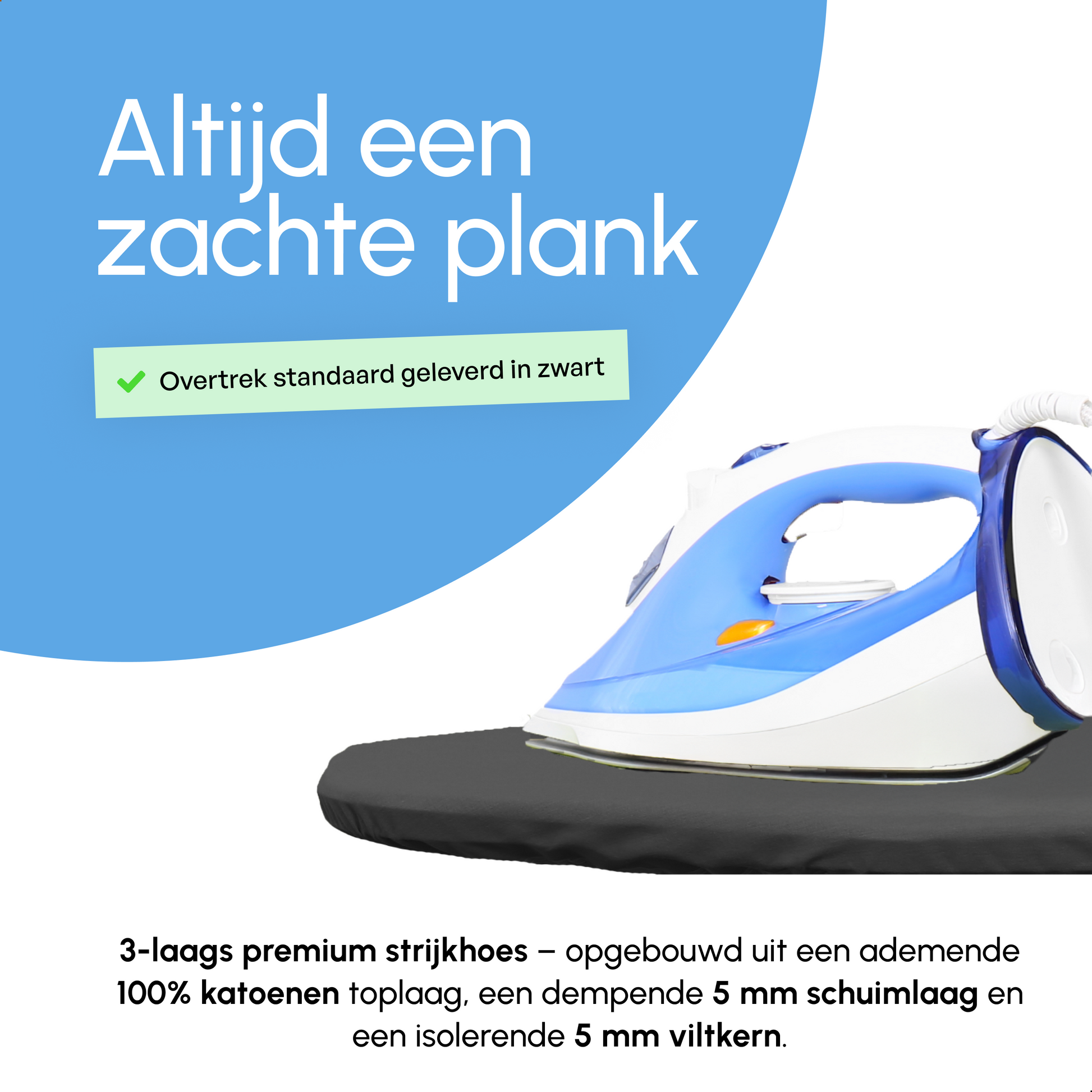 Gemaakt van een ademende 100% katoenen toplaag, een 5 mm schuimlaag en een isolerende 5 mm viltkern – voor soepel en efficiënt strijken.