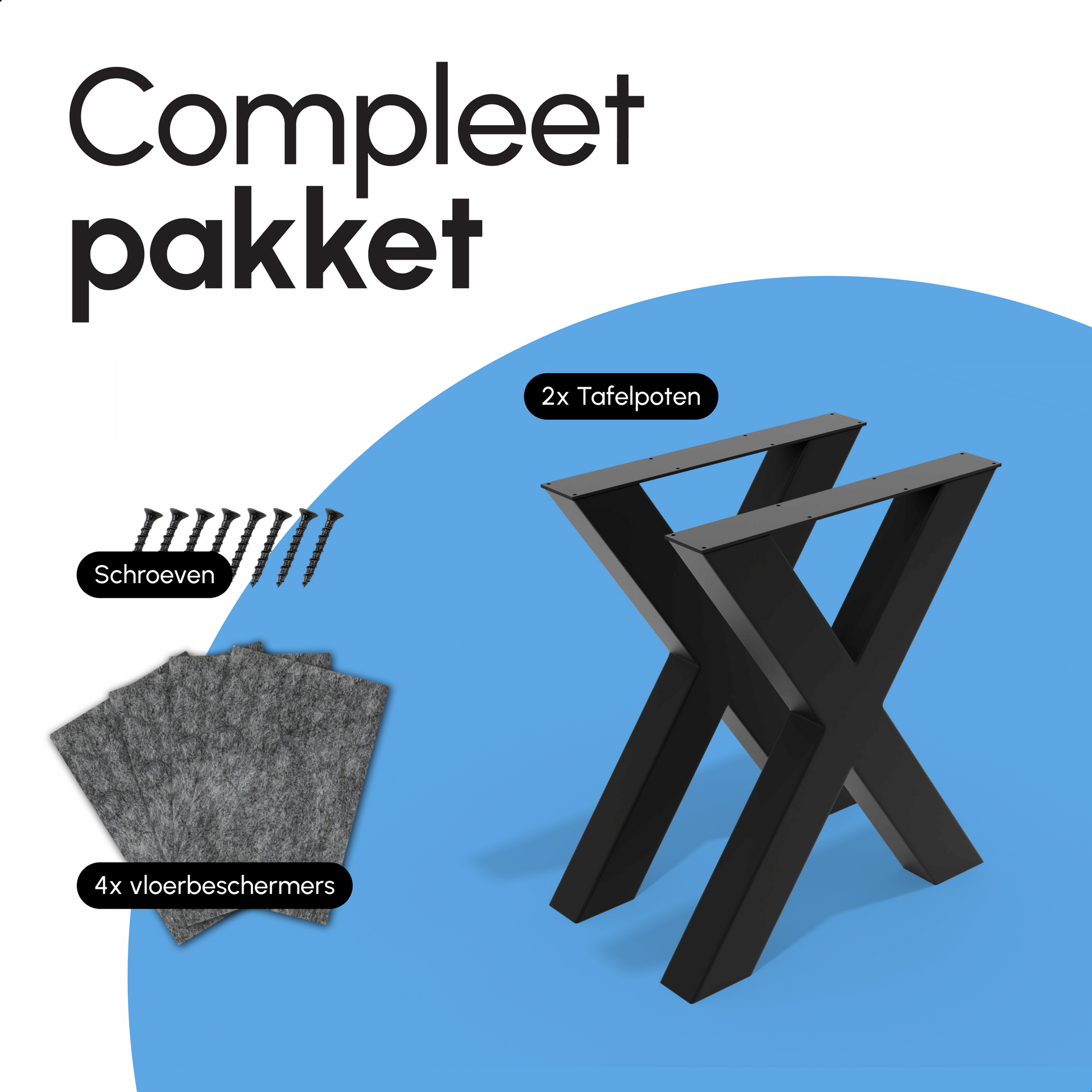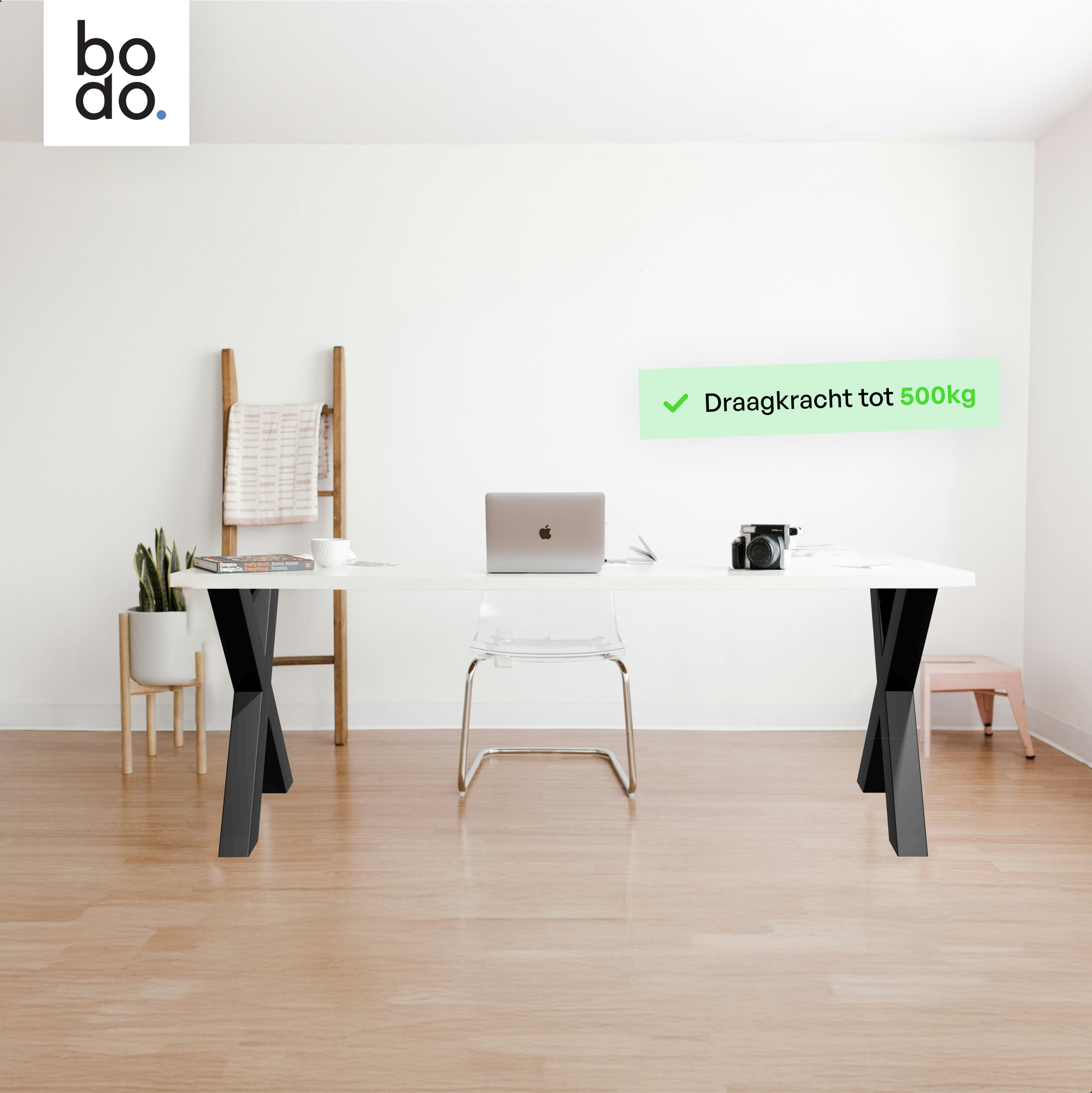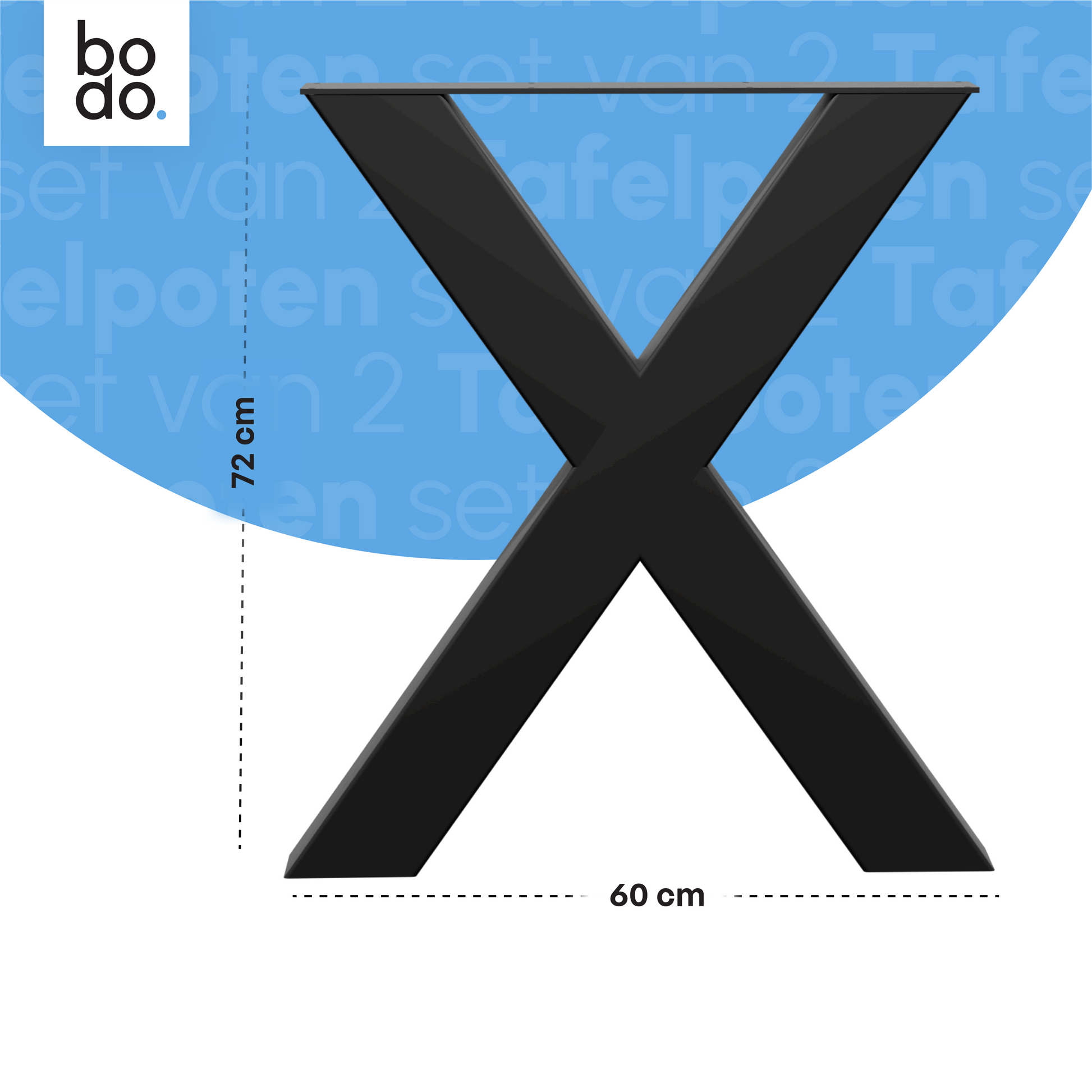 Bodo® - Tafelpoten - Stalen onderstel X 60x72cm Set van 2 - Mat Zwart