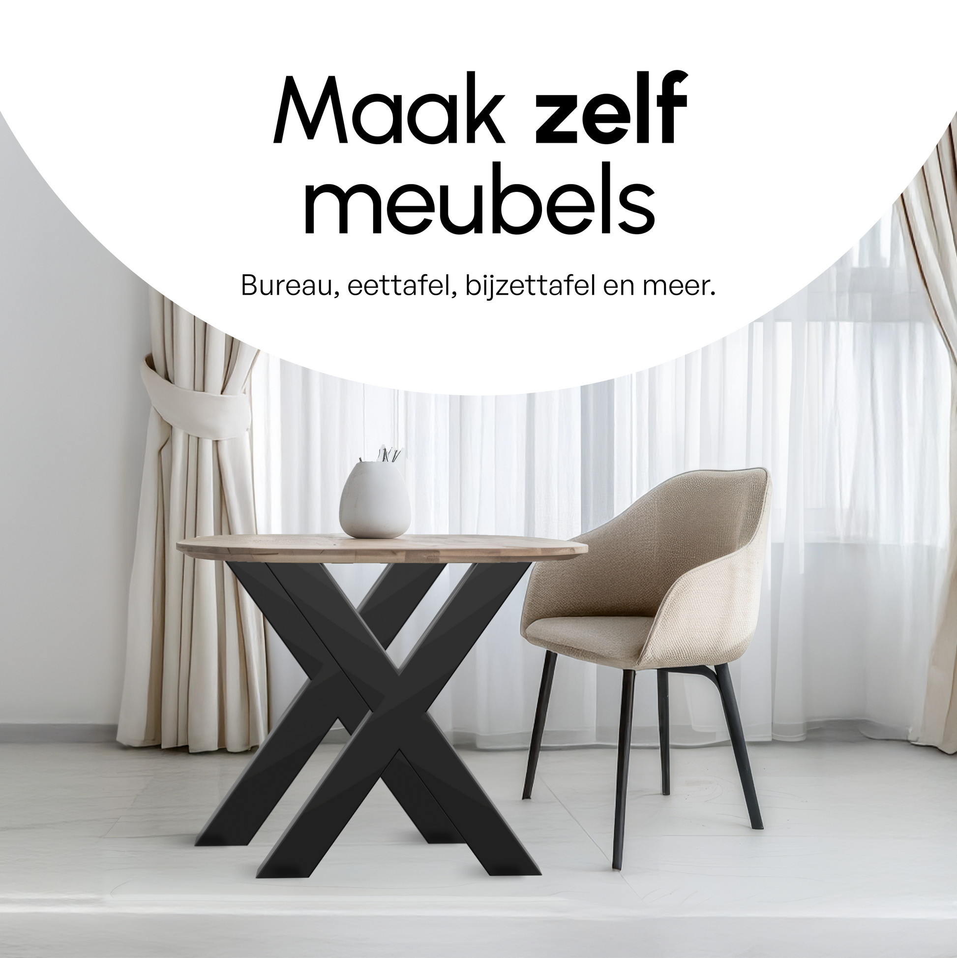 - Set van 2 tafelpoten: Creëer moeiteloos unieke tafel- & bank ontwerpen met deze set van 2 moderne X-vormige tafelpoten, die perfect passen bij uw stijl en ruimte.