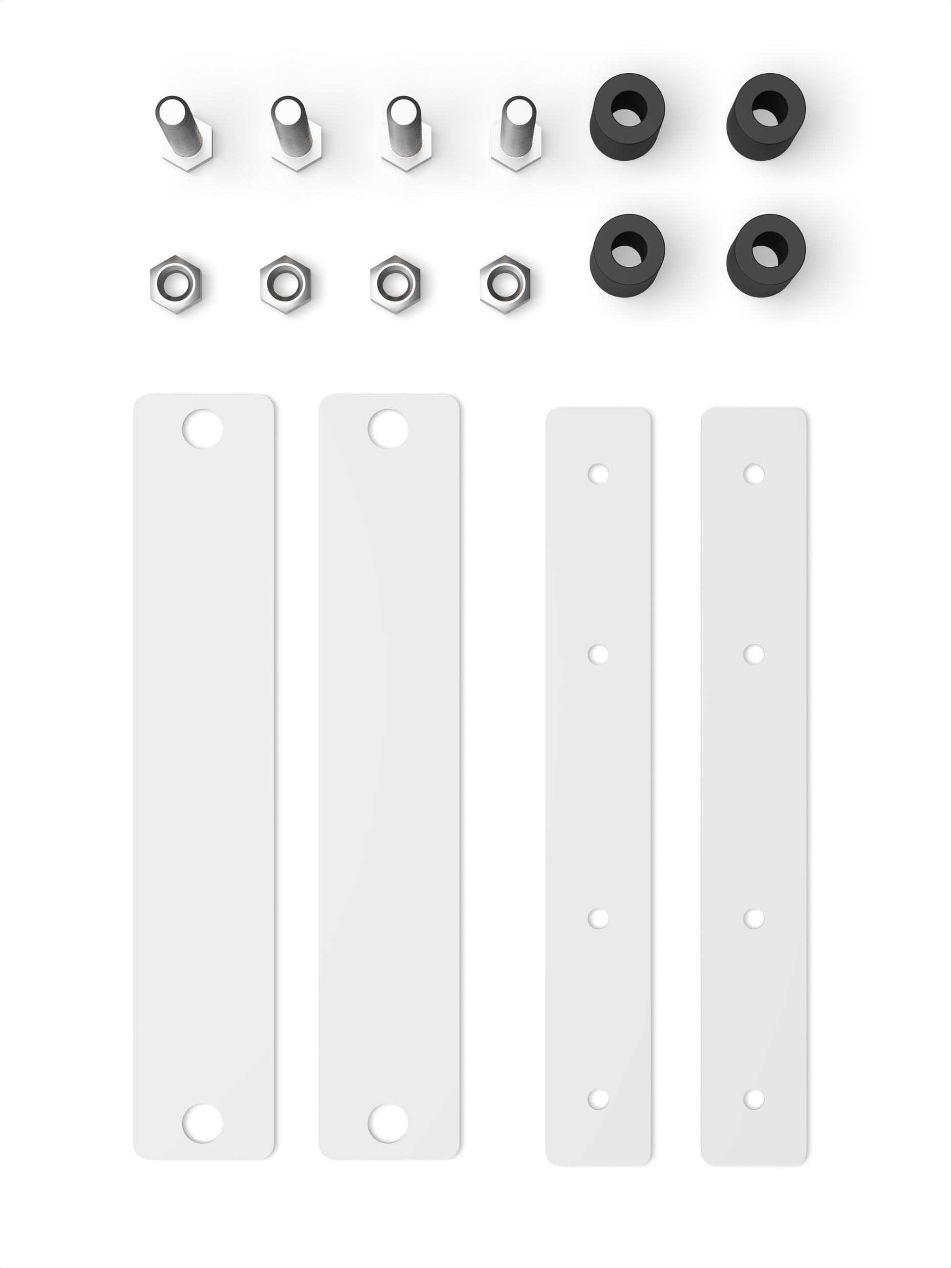 Of je nu twee enkele verhogers naast elkaar wilt koppelen of een dubbele verhoger wilt aansluiten op een enkelen en daarmee wilt verstevigen: deze set zorgt voor extra stabiliteit, betere gewichtsverdeling en een strak geheel – zonder speling of verschuiving.
