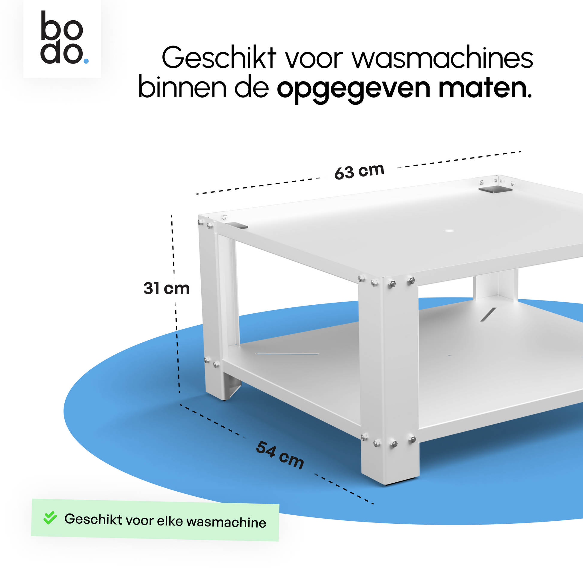 Bodo® - Wasmachine Verhoger - Wasmachine opbouwmeubel - Wasmachine verhoger met Legplank - Wasmachine Sokkel - Universeel - Wit