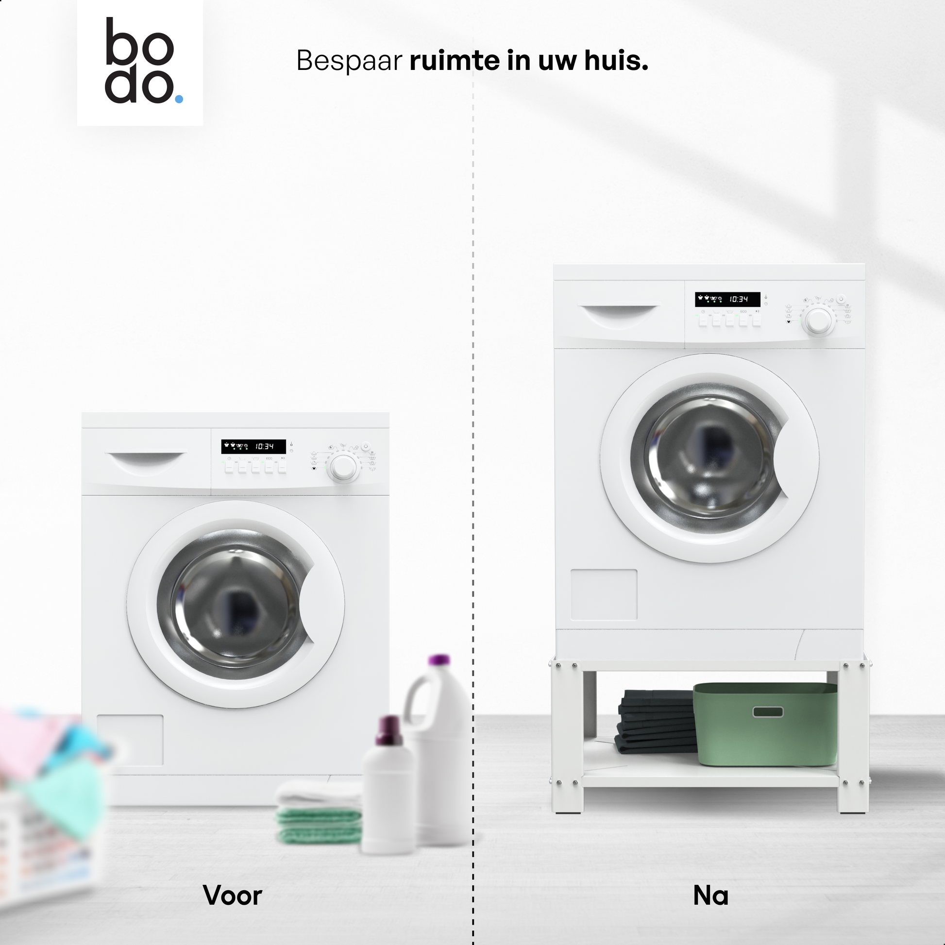 Kies voor het ultieme gemak in jouw wasruimte! Verbeter jouw waservaring met de Bodo wasmachine- en drogerverhoger. Nu verkrijgbaar in stijlvol wit of zwart. Bestel nu en transformeer jouw wasruimte!