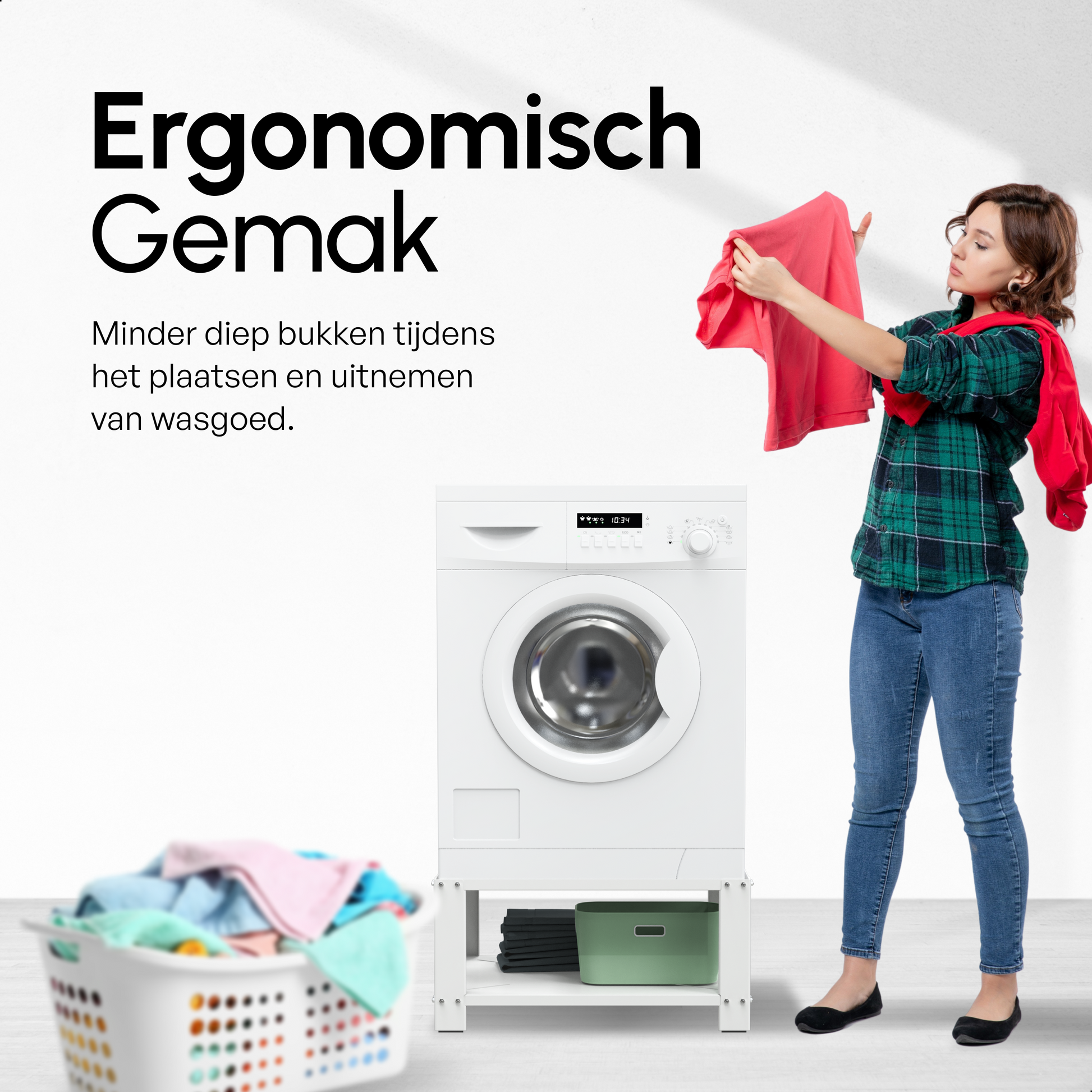 Ergonomisch Ontwerp: Verhoogt jouw wasmachine tot een ergonomische werkhoogte, waardoor rugklachten worden verminderd en het laden en lossen van de was moeiteloos wordt.