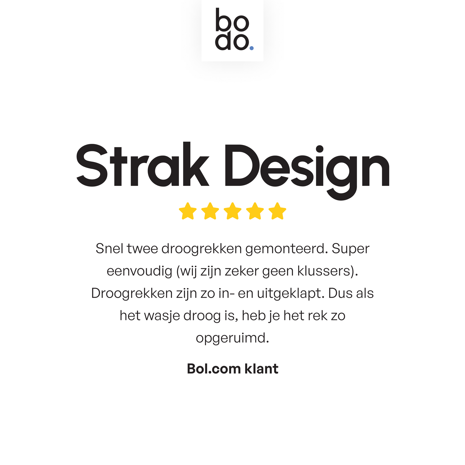 Het in- en uitklapbare Bodo droogrek is niet alleen ontzettend eenvoudig in gebruik, maar heeft ook een strak en modern ontwerp. Geschikt voor elke plek in huis, zodat je ruimte hebt wanneer je het nodig hebt.